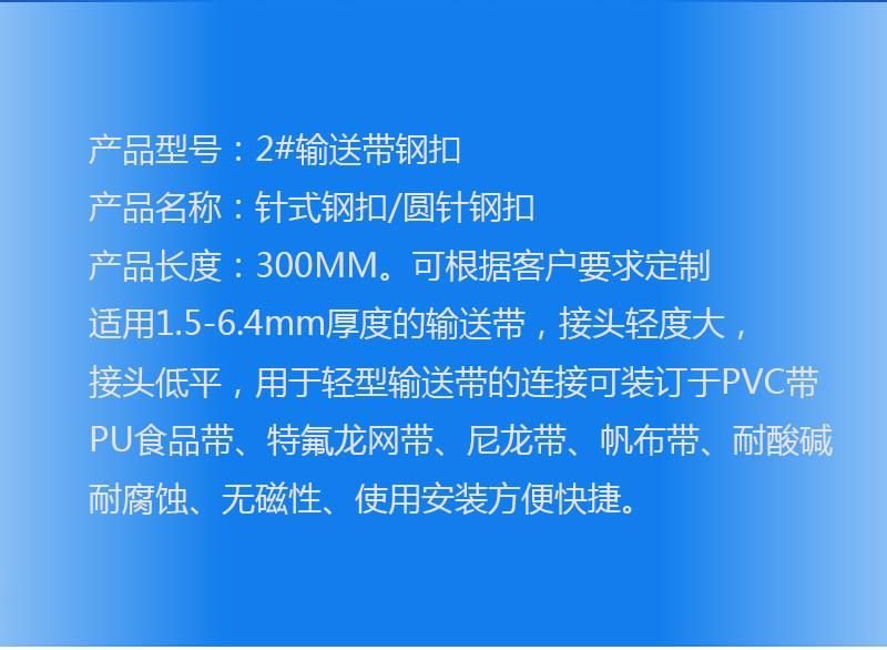 當(dāng)前位置:精焊首頁 > > 2#l輸送帶鋼扣,輸送帶連接頭